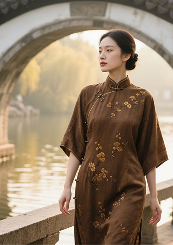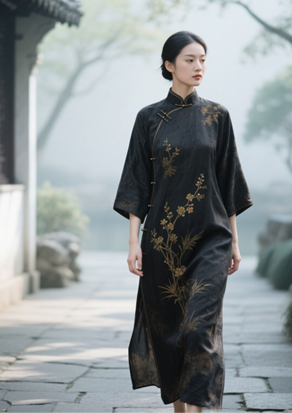 古法平裁旗袍不同于立裁旗袍的曲线强化,其美学在于“藏”而非“显”——宽绰的袖笼与下摆隐现肢体轮廓,如同中国水墨画的留白意境。这种工艺近年因非遗保护与中式美学复兴而重获关注,成为追求文化深度与穿着舒适者的首选,亦是传统工匠精神与现代可持续时尚的跨界载体 。