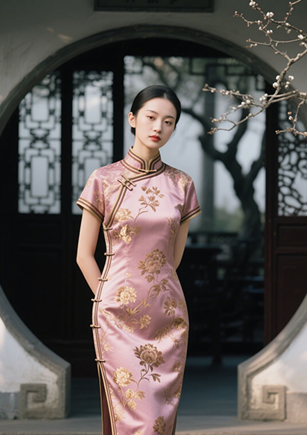 精选重磅真丝、织锦缎等上乘面料,搭配金银丝线、苏绣盘金绣等传统工艺,牡丹、云纹等吉祥图案在衣袂间绽放,每一处细节都彰显华贵典雅。从立领到盘扣,从开衩到裙摆,依据身形、气质与宴会主题量身设计,收腰剪裁凸显婀娜曲线,改良廓形适配多元场景,让古典韵味与现代时尚碰撞出独特火花。